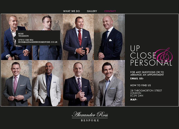 Fridge Creative were tasked with re-designing the Alexander Ross website, giving it a clean more modern feel, placing emphasis on their bespoke service and product. The website is photography led, to showcase their beautifully tailored collection.