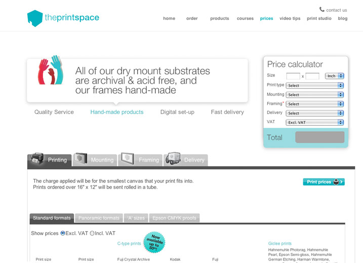 The site showcases the full range of their services, allowing the users to get a good feel of their products. Along with plenty of extras to help the users, including video tutorials and an interactive price calculator.